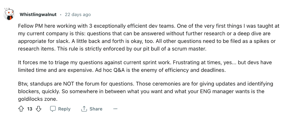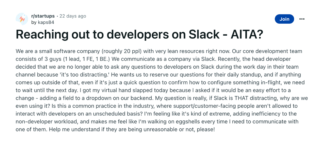 In the highly competitive landscape of today’s market, top-notch technical support is indispensable for the triumph of any product. However, the road to achieving this is not always smooth sailing. A prevalent challenge on Reddit emerges when developers insist on reserving all questions for daily standups, even if it’s a brief inquiry that could be swiftly addressed.