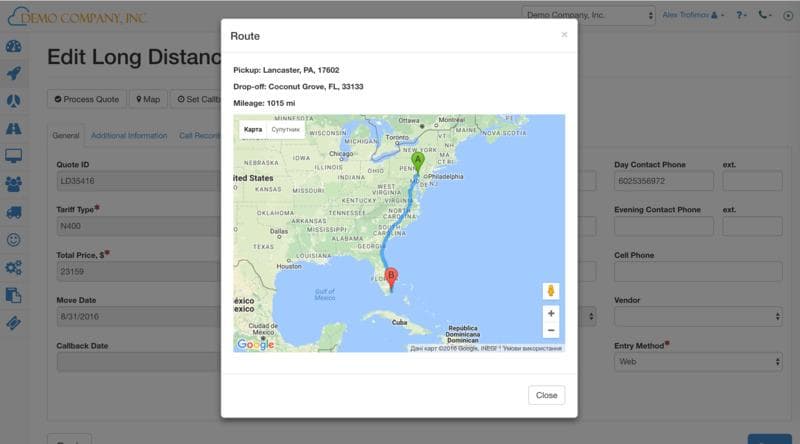It’s a cloud-based service for managing household moves, including transportation, loading, unloading, packing, and unpacking. Brokers license the software on a subscription basis. The features implemented for our client cover all business operations of logistics companies.